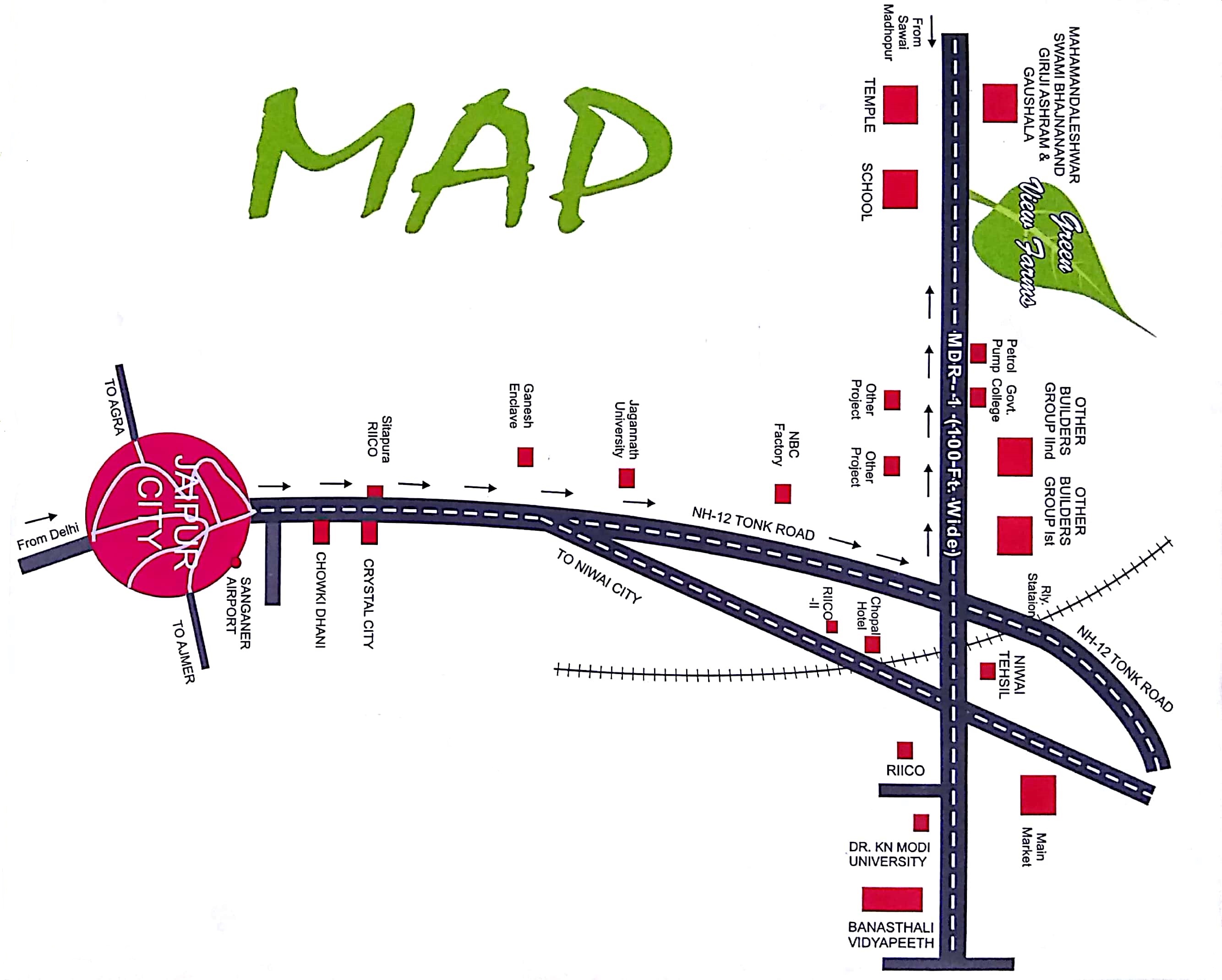 of farm houses with facilities including shopping complex, jogging track, yoga center, club house, commercial complex, wide pitched roads etc. it is situated in proximity of many education institutes. it is in Niwai, known as education hub of Rajasthan. With lot of location advantages, we offer you the best deal to suit your pocket and best investment plans which assures you the long term association with our group.